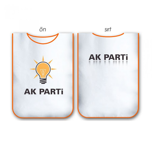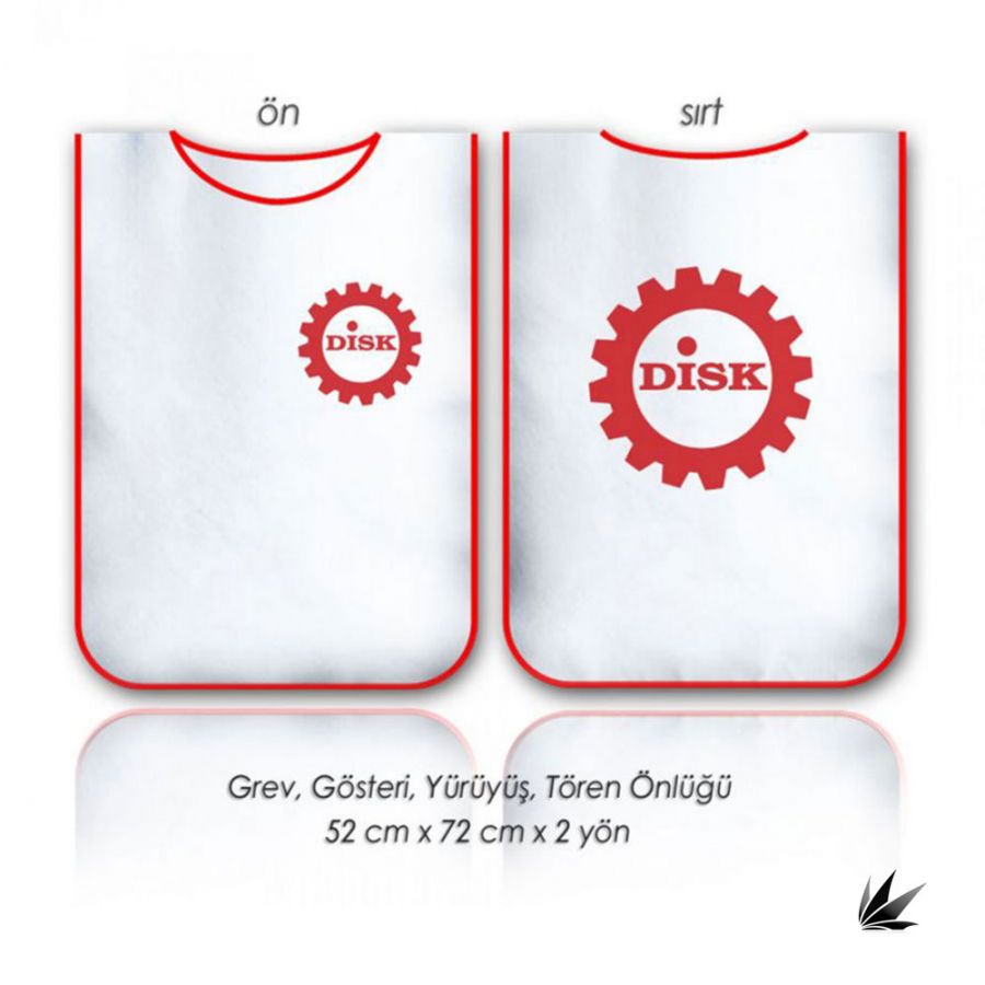 Parti ve sendika önlükleri 50×75 cm. ebatlarında %100 polyester bazlı kumaşlardan üretilmektedir.